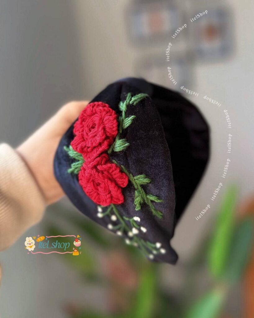 تل اسکارفی مخمل مدل گل رز